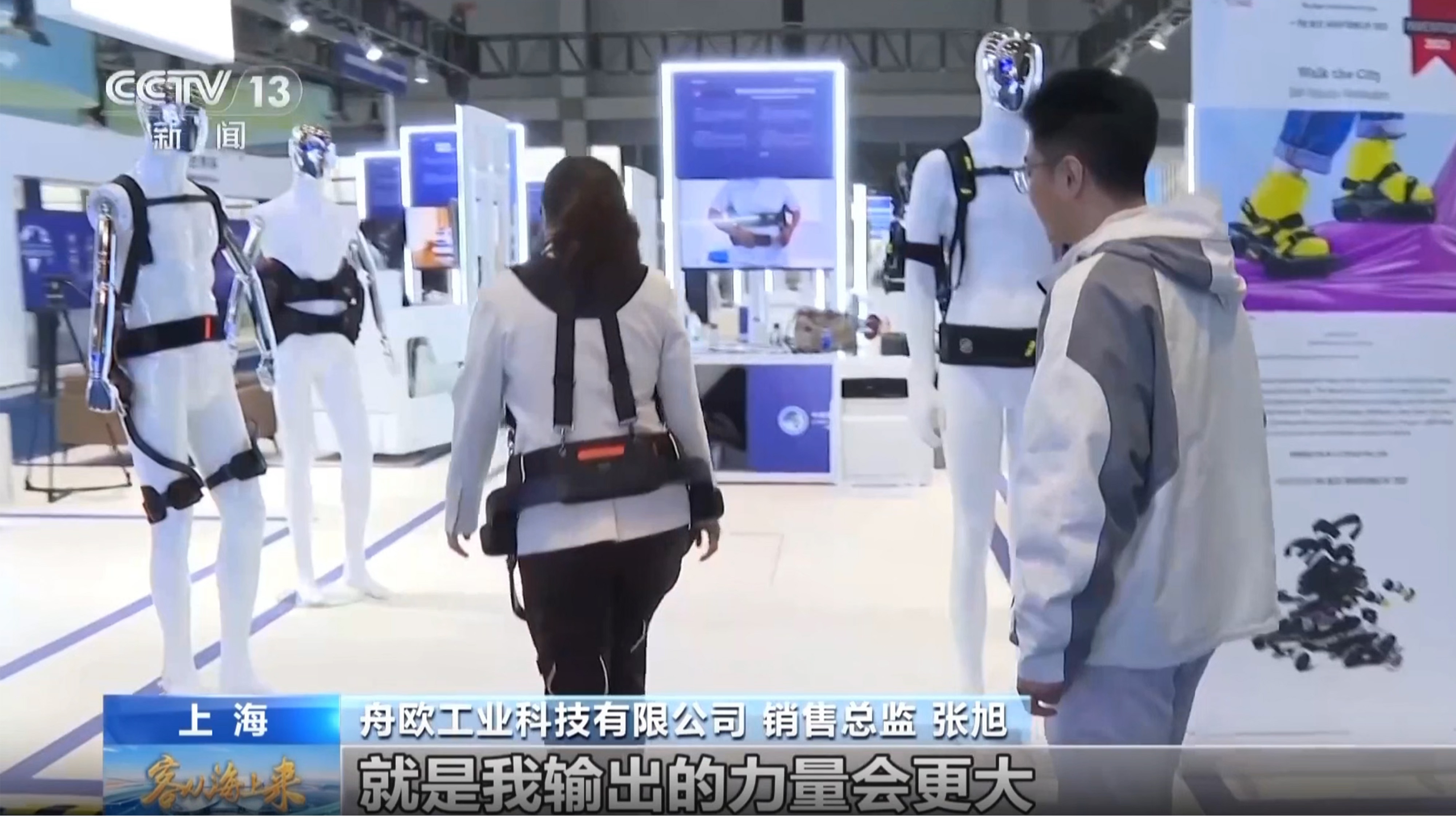 Zhang Xu, Sales Director of Zhouou Industrial Technology Co., Ltd., introduced to CCTV reporters at the exhibition: “The assistive exoskeleton can be used by seniors for climbing mountains, going upstairs, and even some rehabilitation training.” This exoskeleton robot, as a wearable mechanical device, works in coordination with human joints through sensors, accurately capturing the user’s leg movement intentions and automatically providing assistance while walking, fundamentally enhancing the user’s mobility. In the exhibition experience area, Zhang Xu helped a reporter put on the exoskeleton robot in just one minute. When the reporter stood up and took steps, the device responded immediately, providing support in sync with leg movements. “It feels like my legs are being pushed forward,” the reporter said. Zhang Xu replied, “Yes, it makes it very easy, especially for the knees.”